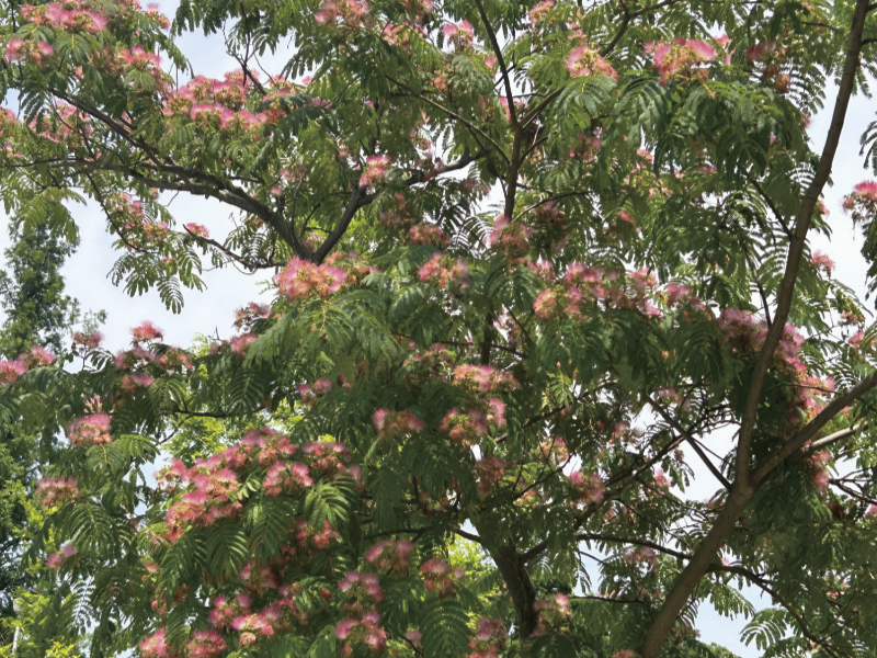 和名のネムノキは、「眠る木」を意味します。夜になると葉が合わさって閉じて眠るように見えることに由来します。