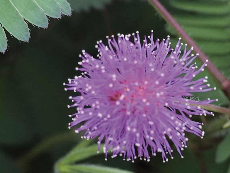 [ネムノキの就眠運動]葉の付け根の膨らんだ部分に葉枕(ようちん)という細胞があり、昼と夜、雨の日などの気温の変化で、内部圧力を変化させる仕組みによって葉を開閉します。