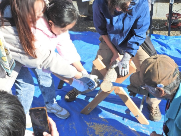 レッツ久宝探検隊「丸太切り体験」11月23日レポート